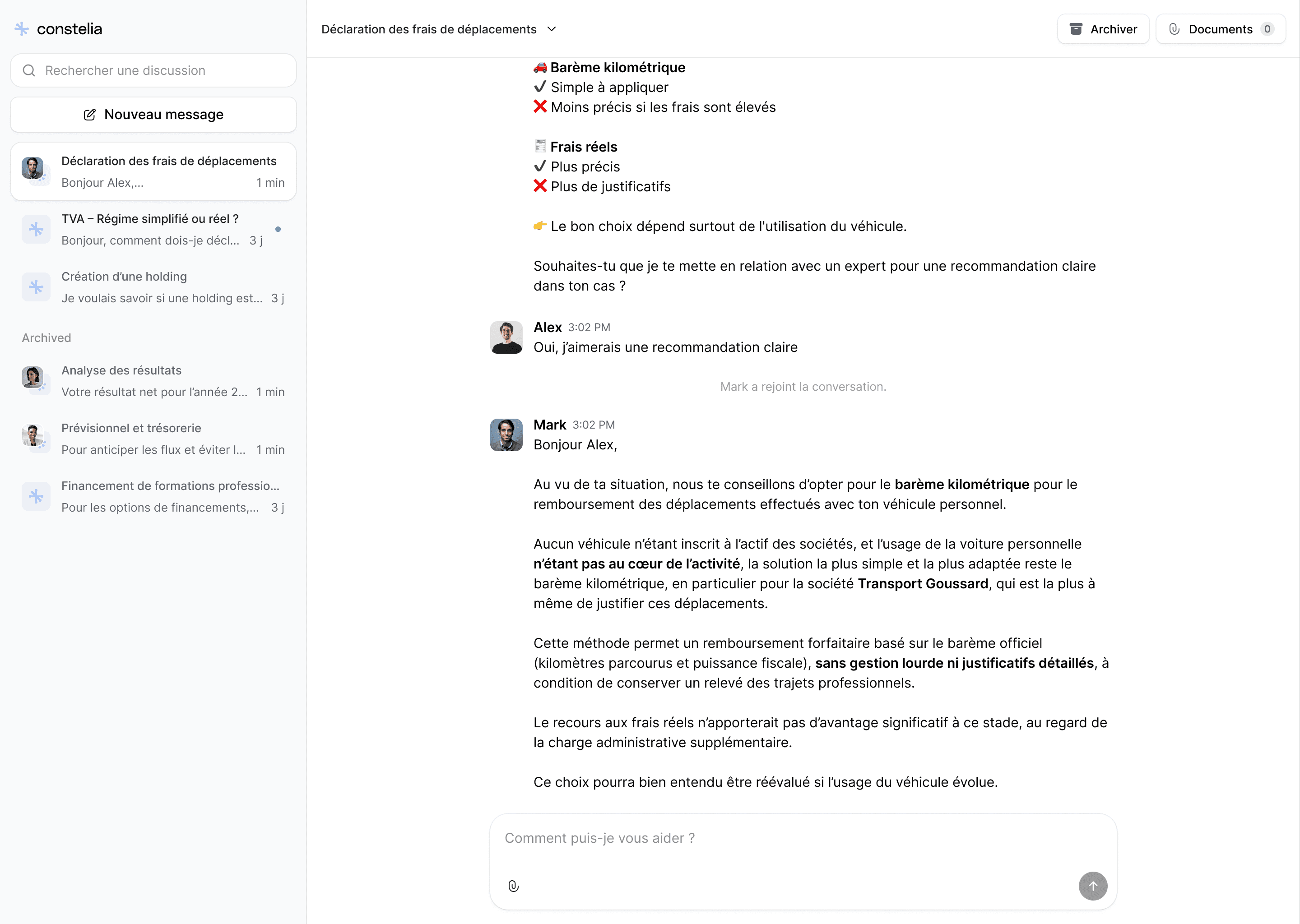 Constelia est en train de se construire pour offrir aux entrepreneurs un accès simple, continu et fiable au conseil fiscal et comptable.